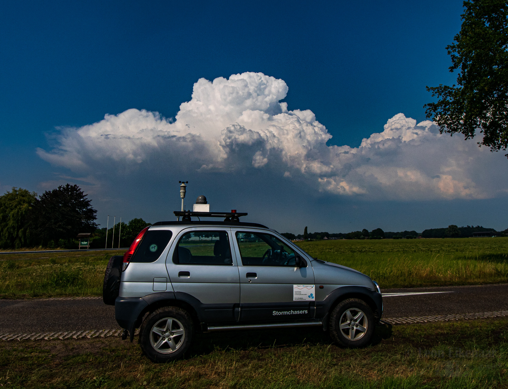 Met de stormchase voertuig werd de bruid 's ochtends vroeg opgehaald en was het rond de middag het moment. De regen kletterde op de ramen, maar het onweer bleef uitgesloten. Wel jammer, want dat was wel bijzonder...