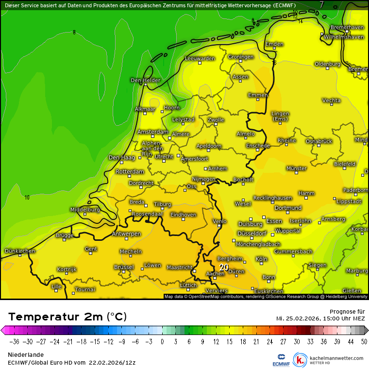 Ook donderdag zal het opnieuw lenteachtig aanvoelen in ons land met maximale temperaturen gemiddeld rond de 14 graden. De hoogste temperaturen uiteraard in het zuiden en zuidoosten van Nederland. De bewolking neemt dan wel wat meer toe en ook bestaat er een kans op wat neerslag. Dit komt doordat de lagedrukgebieden boven de Atlantische Oceaan meer invloed gaan geven op ons weerbeeld. De hogedrukgebieden schuiven iets meer oostelijker.